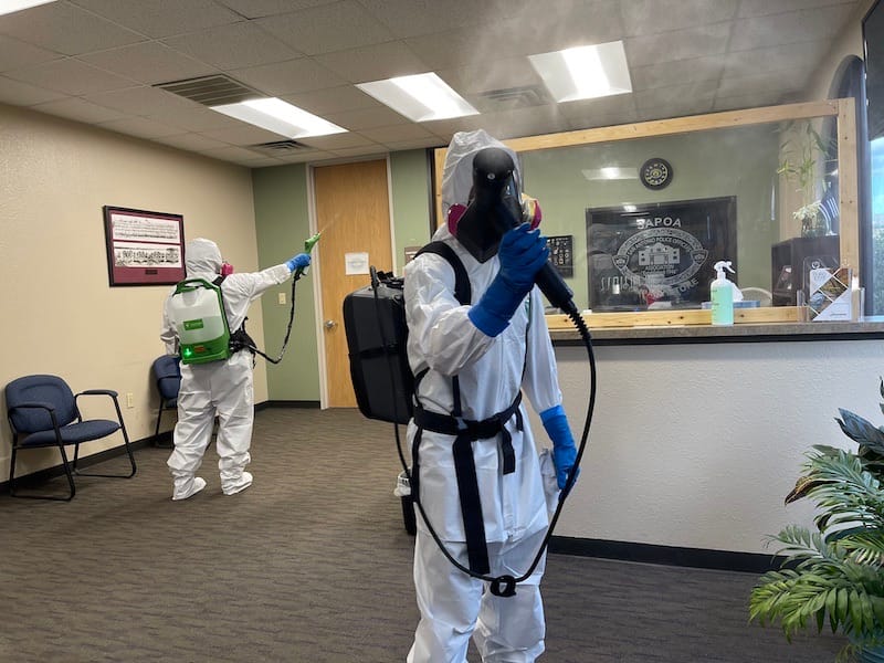 Certified technicians use hospital-grade disinfectants and follow strict procedures to eliminate all contaminants and safely remove biohazard waste.